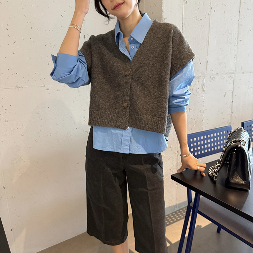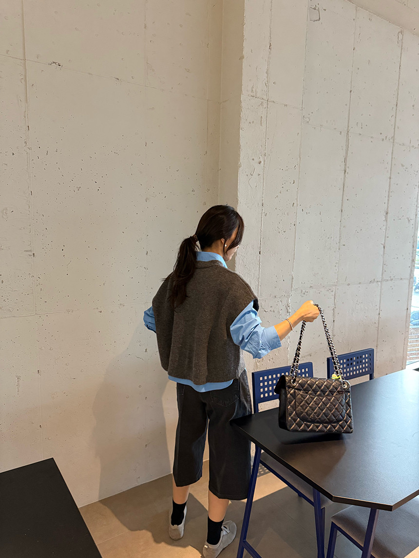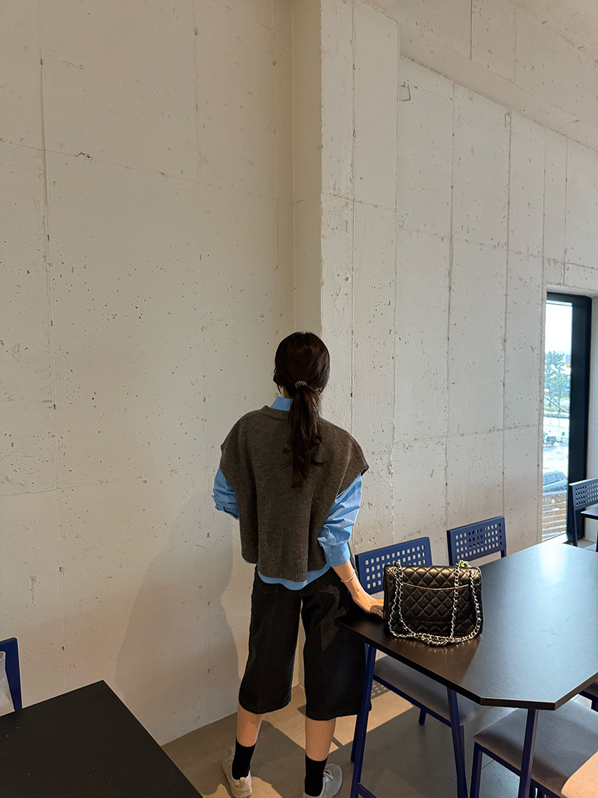 [디자인] -어깨 라인 살짝 드랍된 스타일 -체형 커버되는 니트 베스트 -슬림해 보이는 브이넥