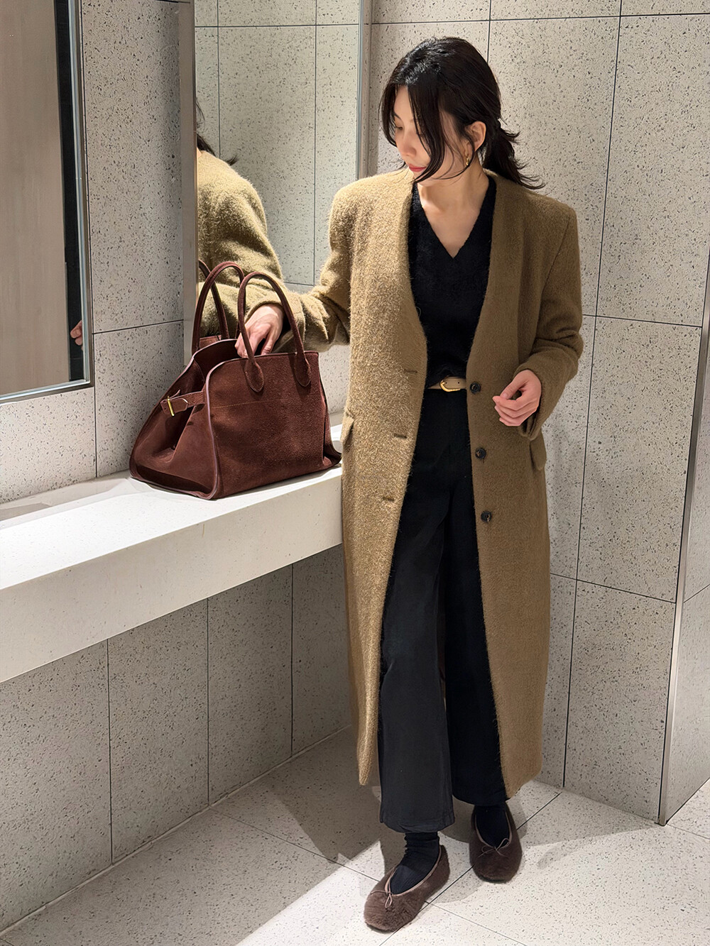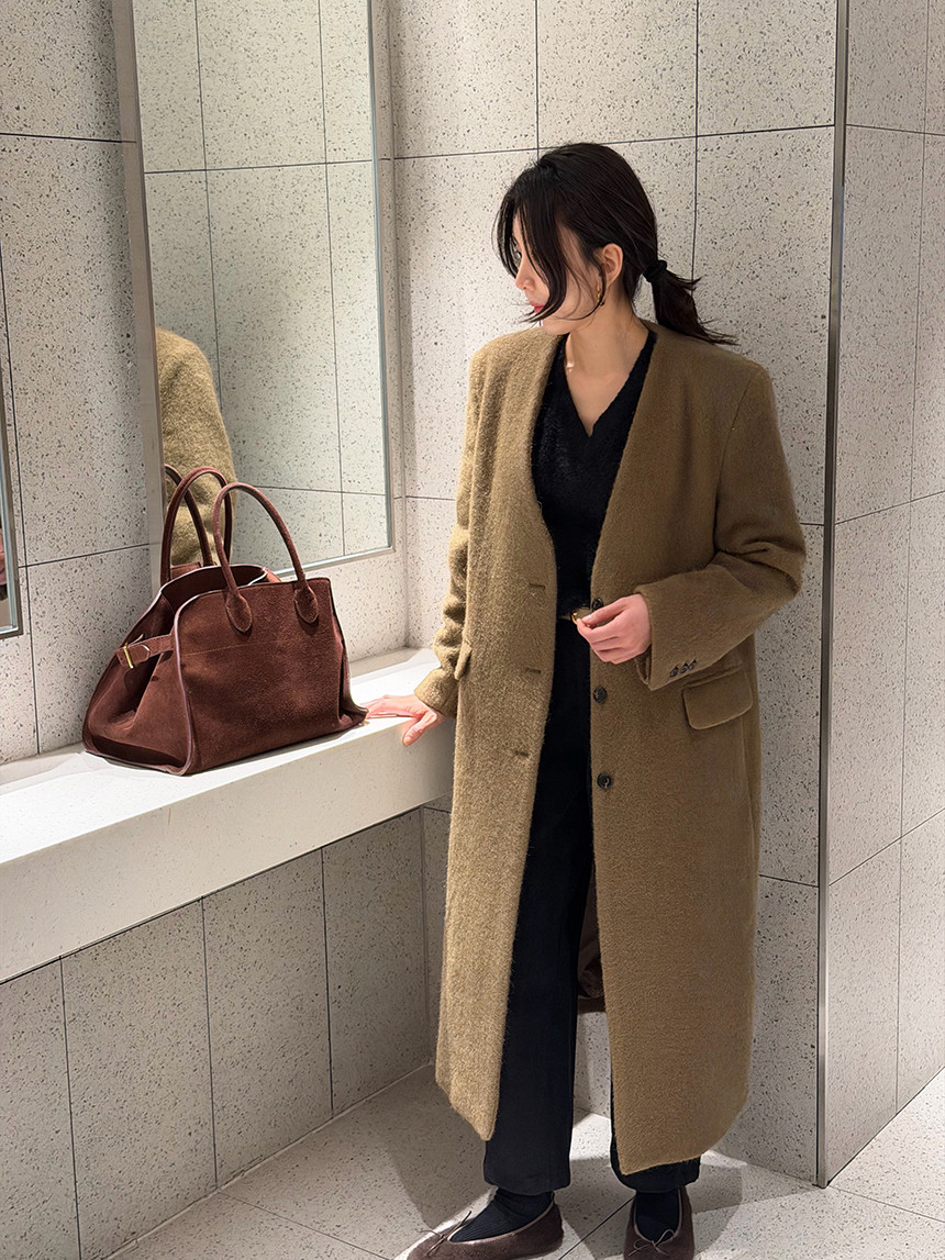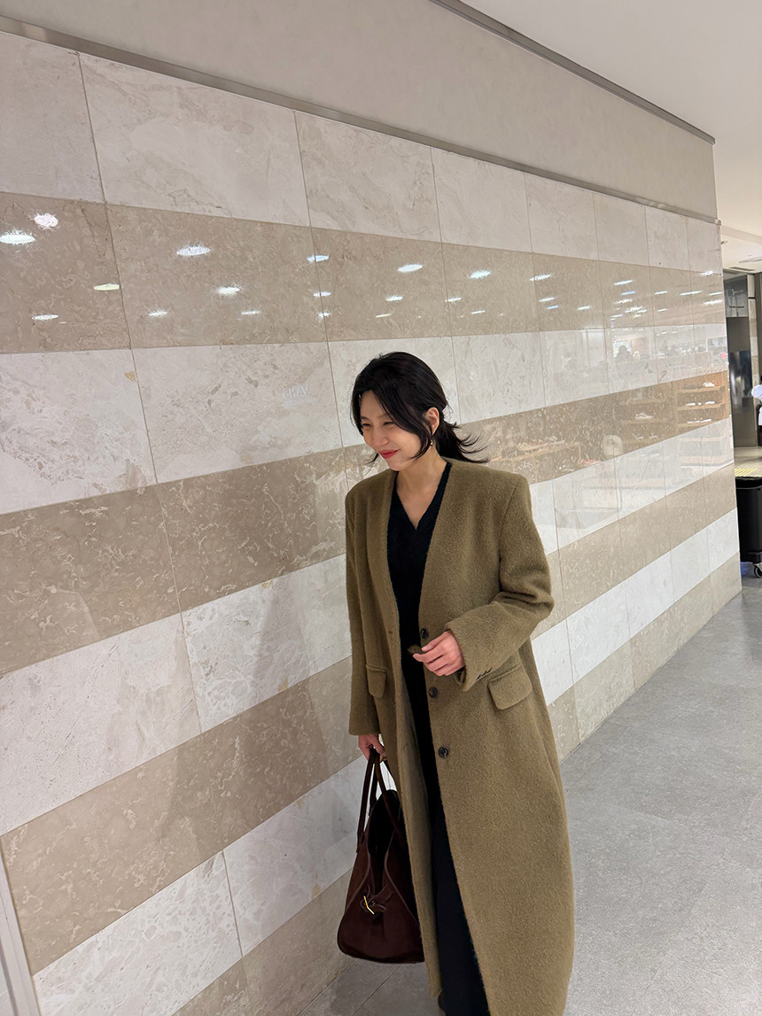 유행없는 디자인! 심플한 노카라 롱코트로 겨울 코디 완성하기