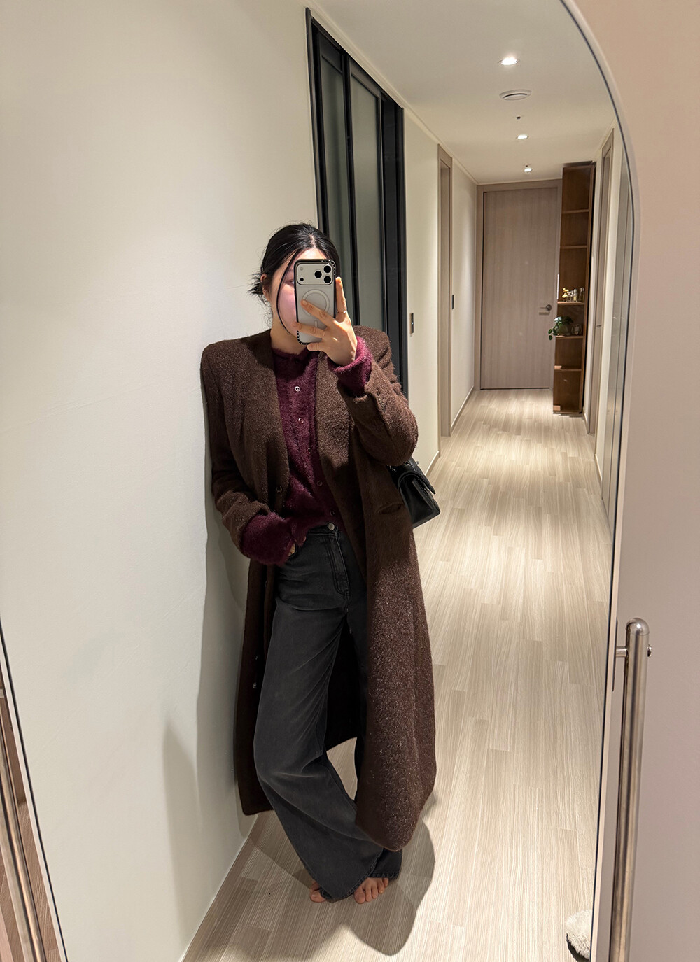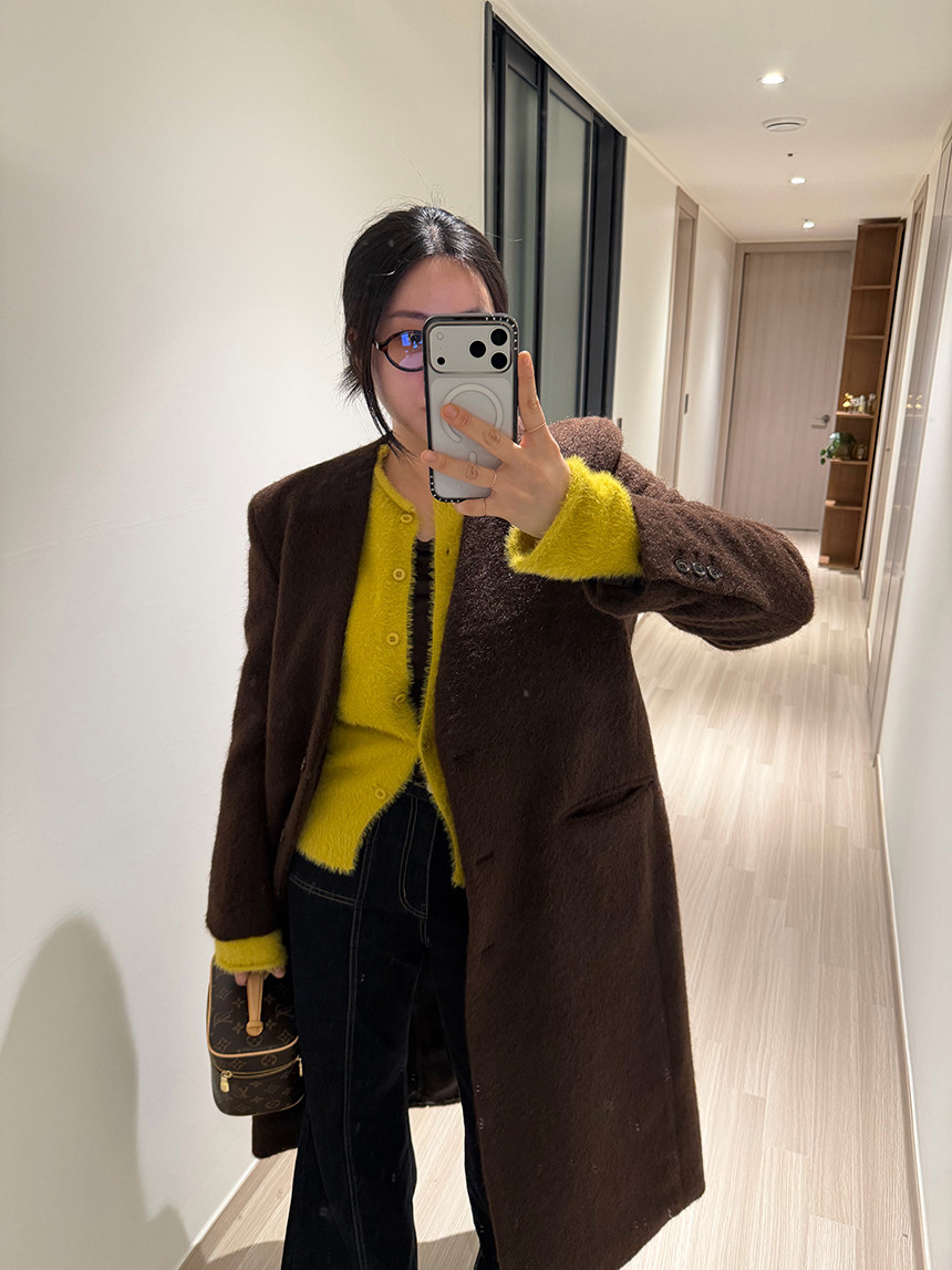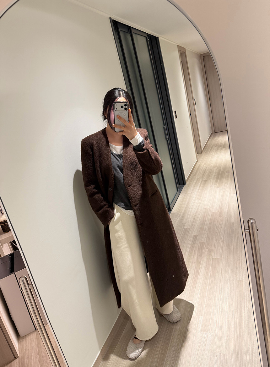유행없는 디자인! 심플한 노카라 롱코트로 겨울 코디 완성하기