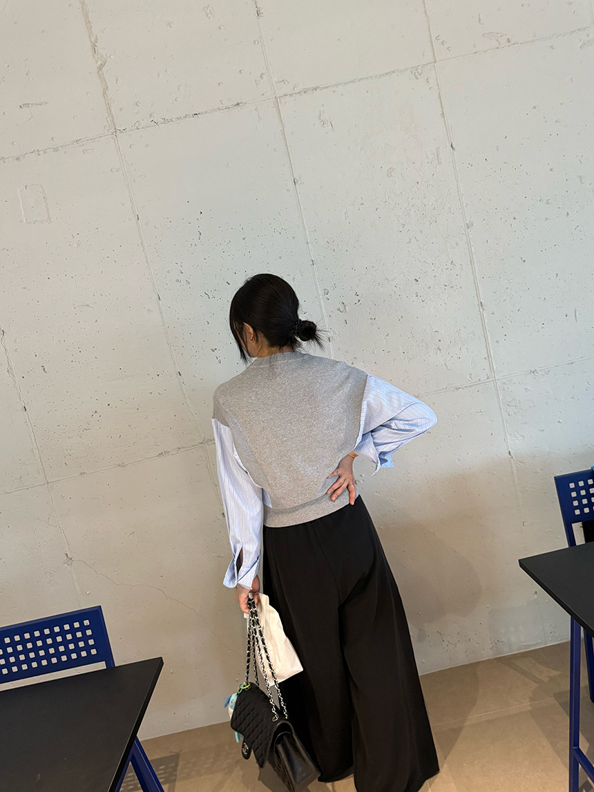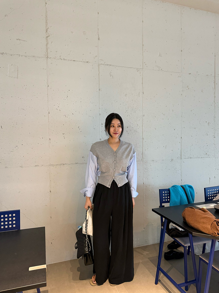 [디자인] 니트에 셔츠가 레이어드 되어 심플하면서 갖춰입는 느낌의 디자인