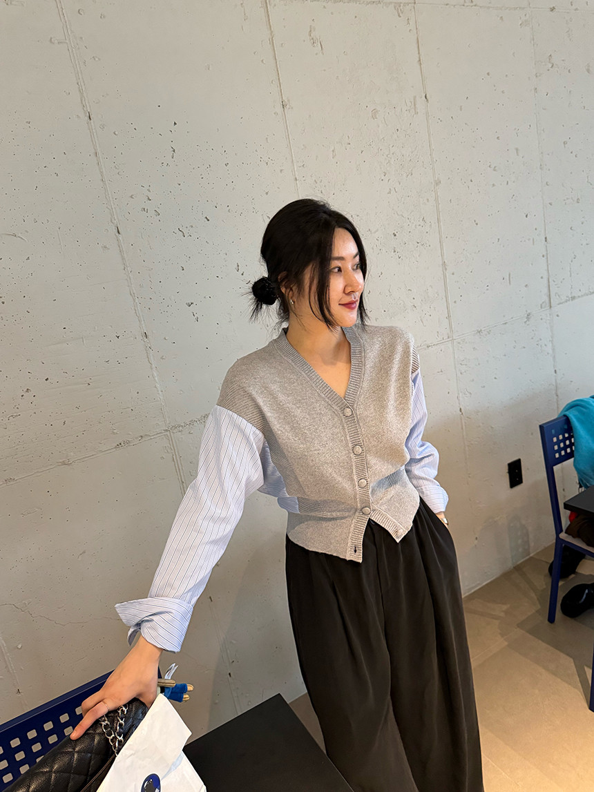셔츠가 가디건에 붙어있는 일체형 가디건이예요