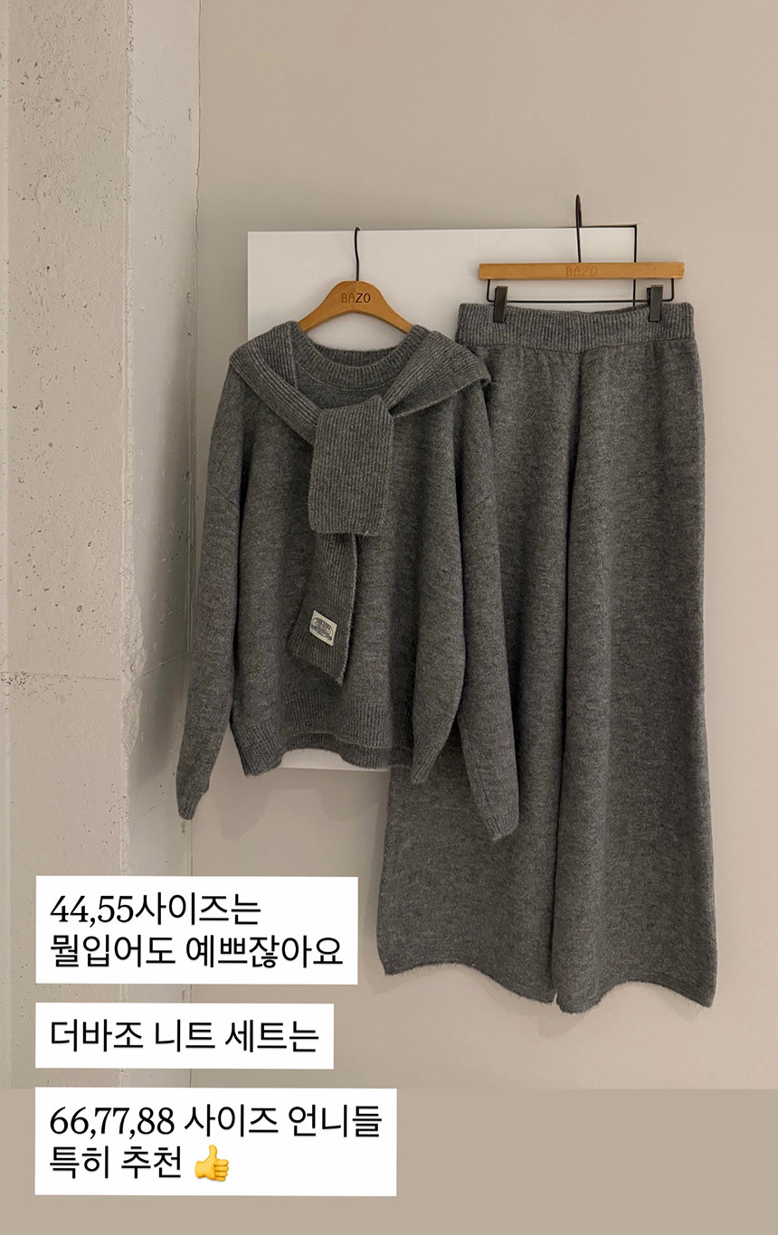도톰한 두께감에 보온성 있으면서 까끄럽지 않은 소프트한 니트소재로 데일리하게 입기 좋은 세트 랍니다