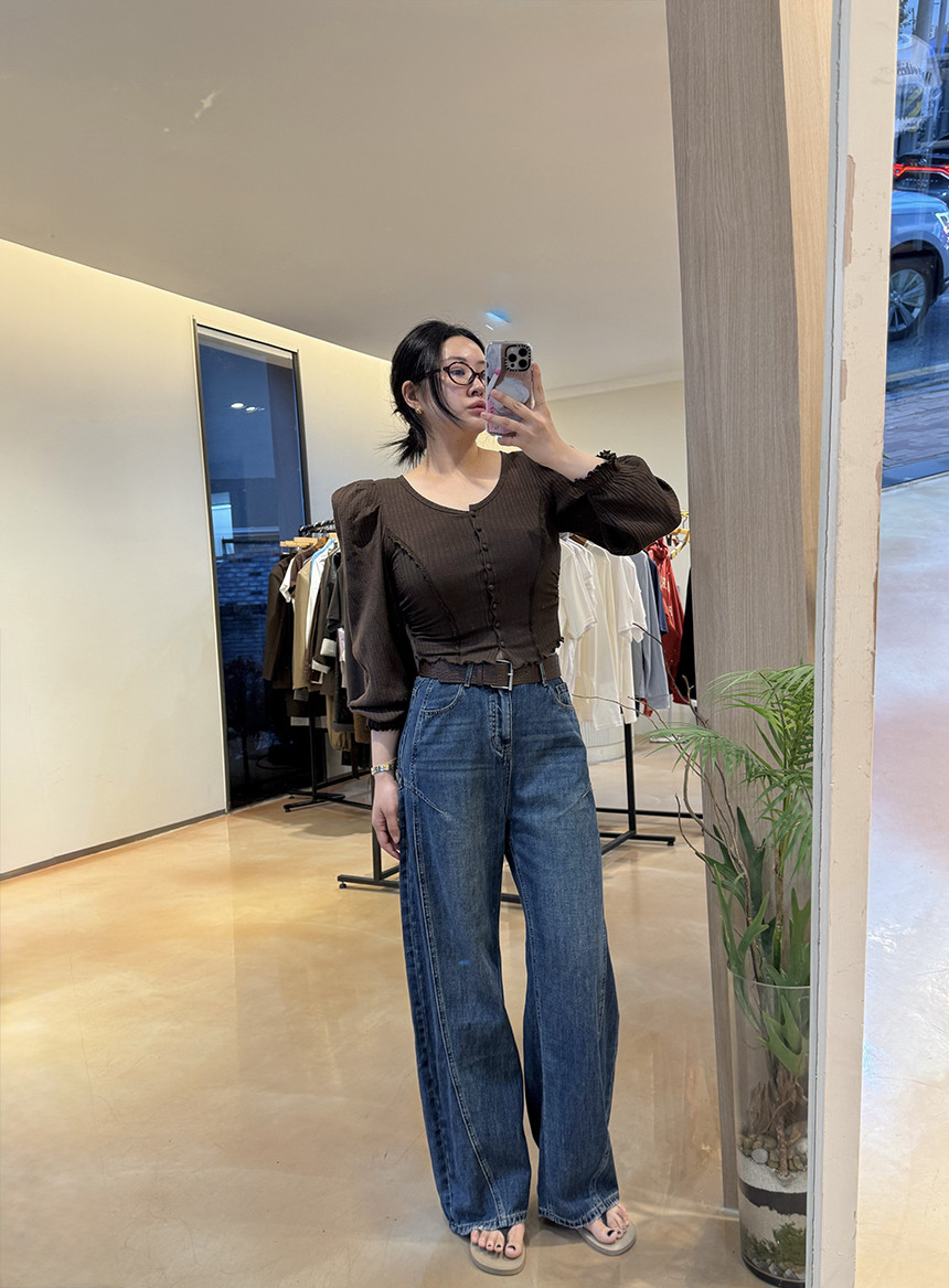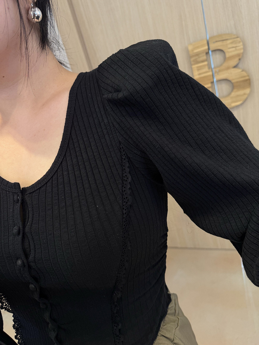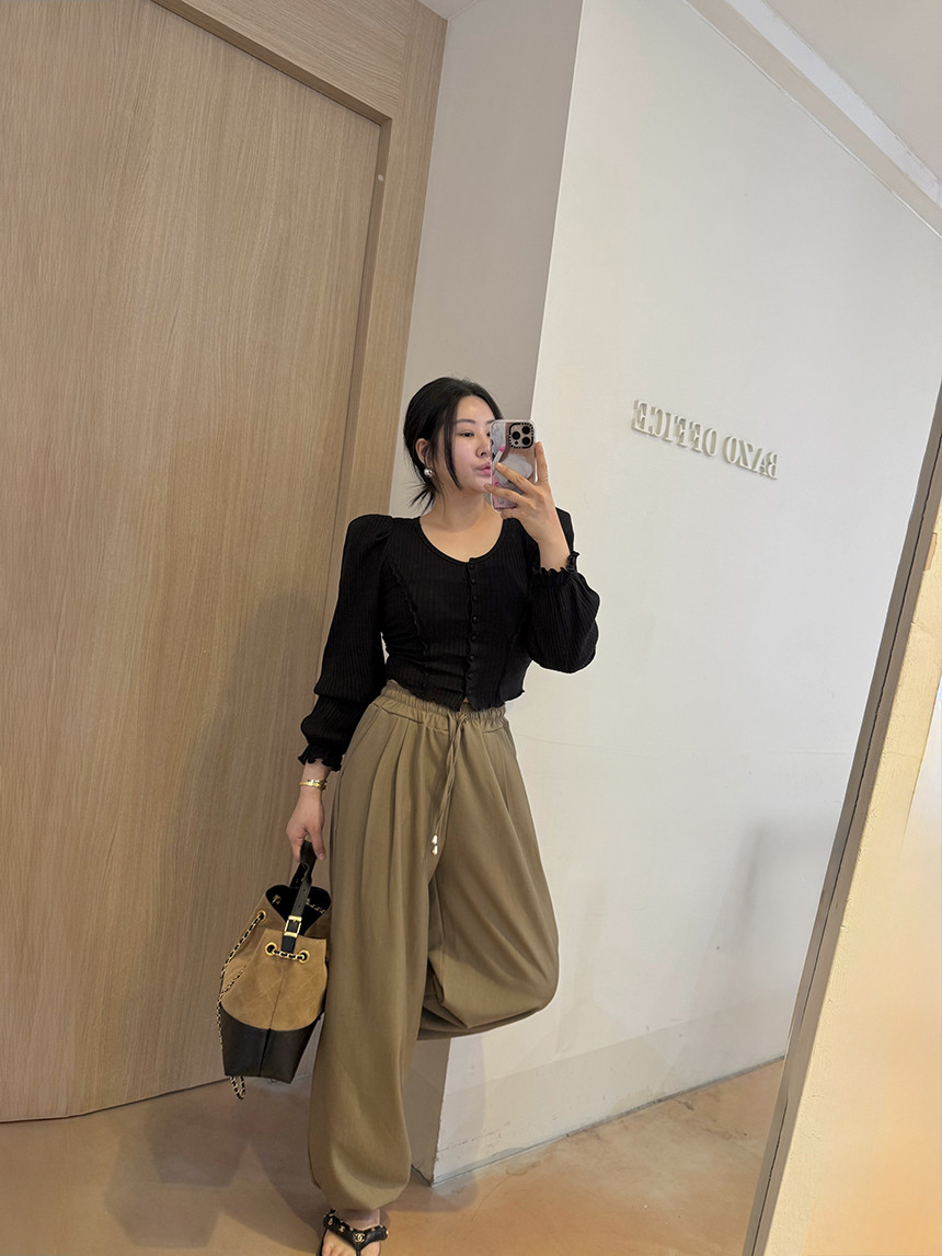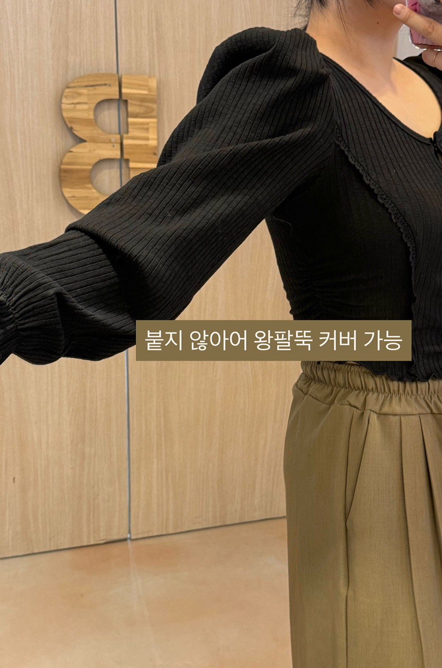 [핏] 슬림한 핏이 몸매를 이뻐보이게 만들어주면서 어깨 패드 있어 팔뚝은 붙지 않아 체형커버 되면서 여성스럽게 입으실 수 있음
