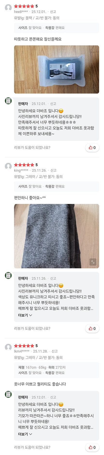 비침도 없고 스판도 좋고 기모 안감에 유발이라 이건 뭐 바지 대용으로 입고 싶을 정도❤