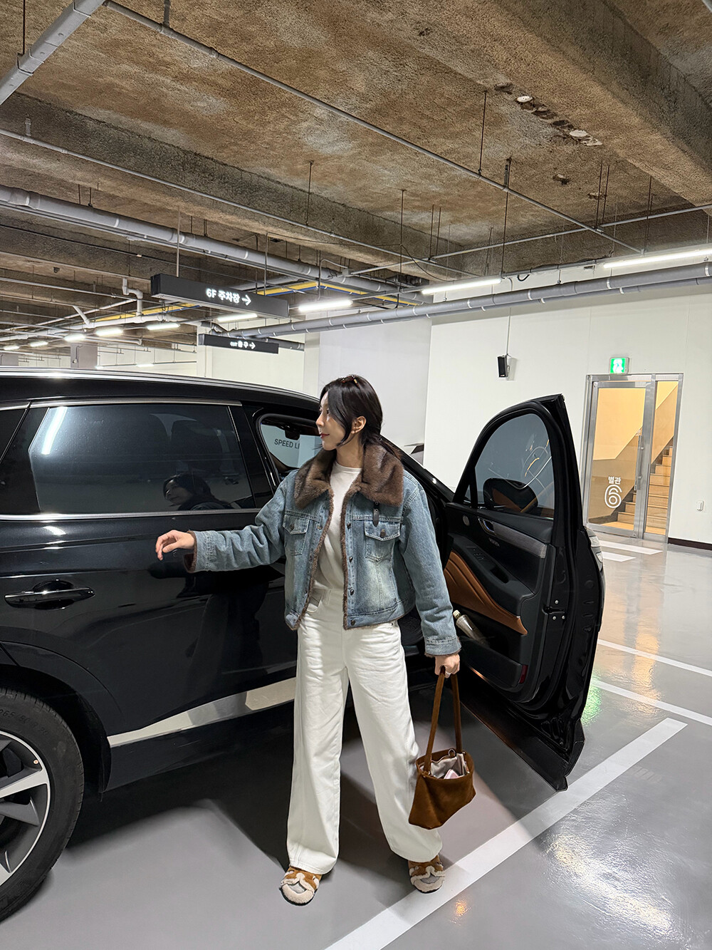 추운 겨울에도 따뜻하게 입을 수 있는 데님 자켓으로