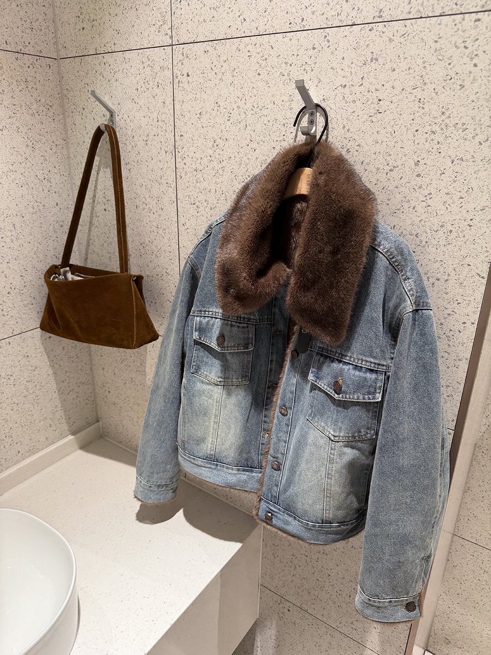 안감 전체 팔 포함 부드러운 밍크털로 나와 보온성과 스타일리쉬함을 모두 잡은 데님 청자켓