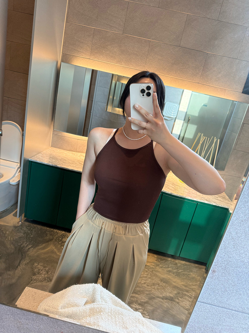 적당히 숏한 기장에 얇은 끈이 특징이며