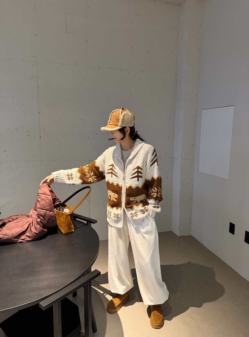 노르틱 패턴의 니트 소재로 북유럽의 포근한 감성 느낄 수 있으며