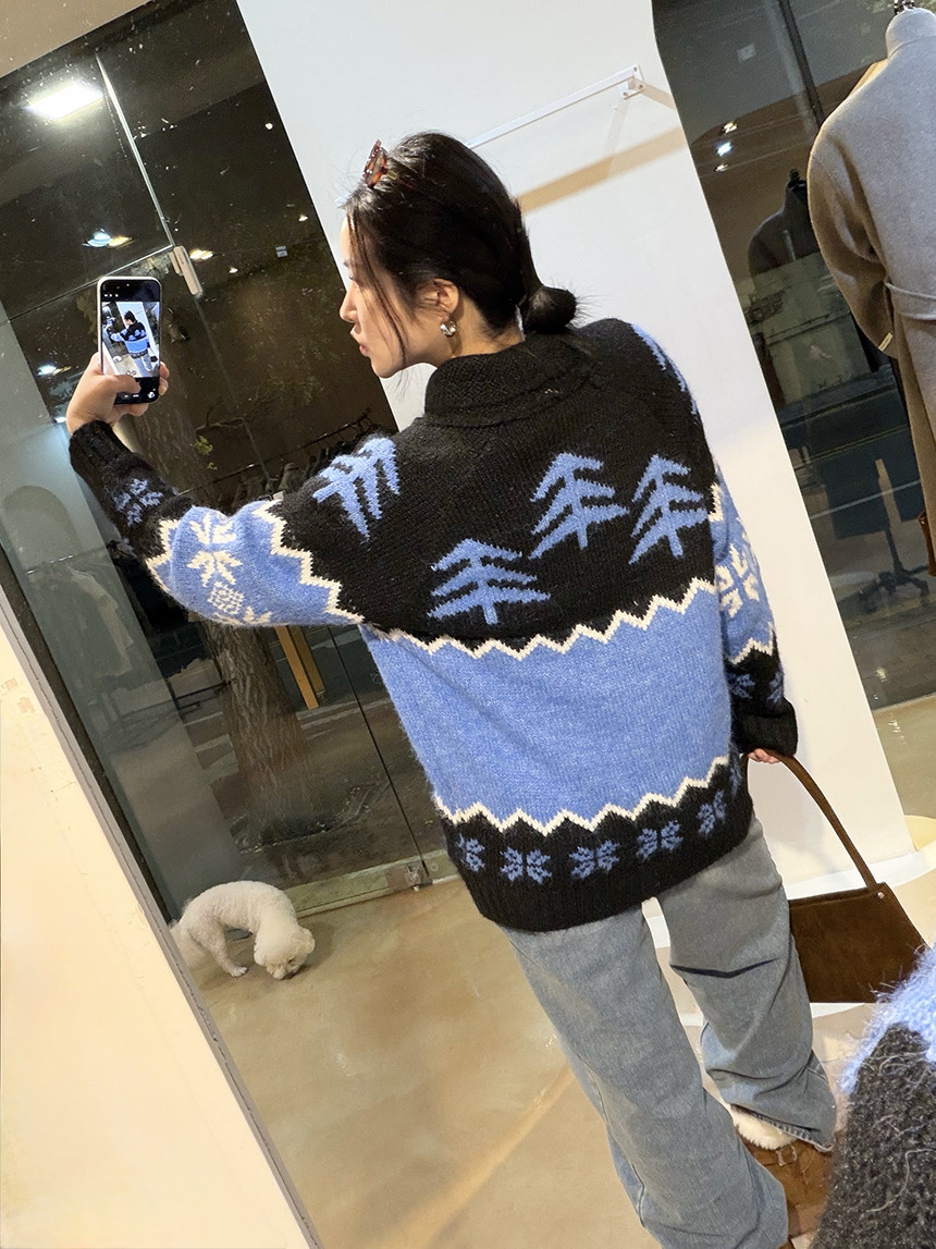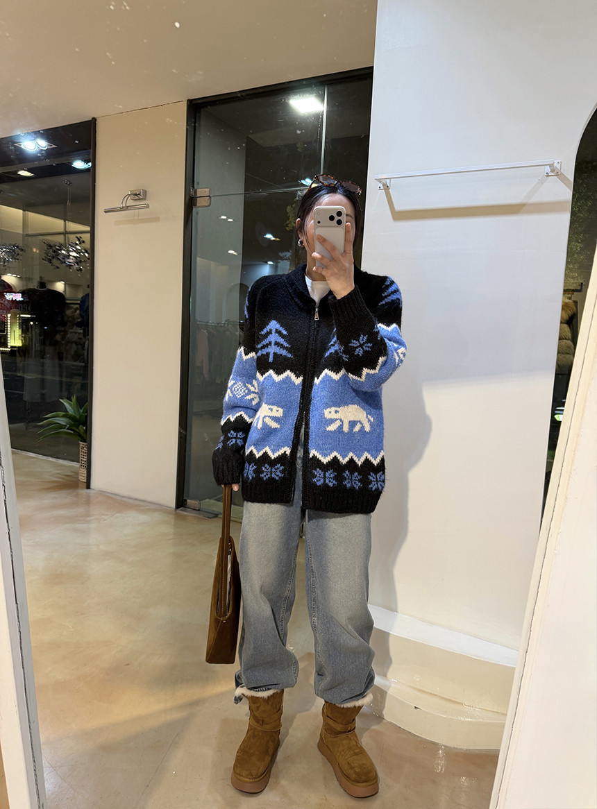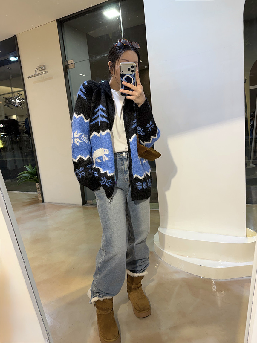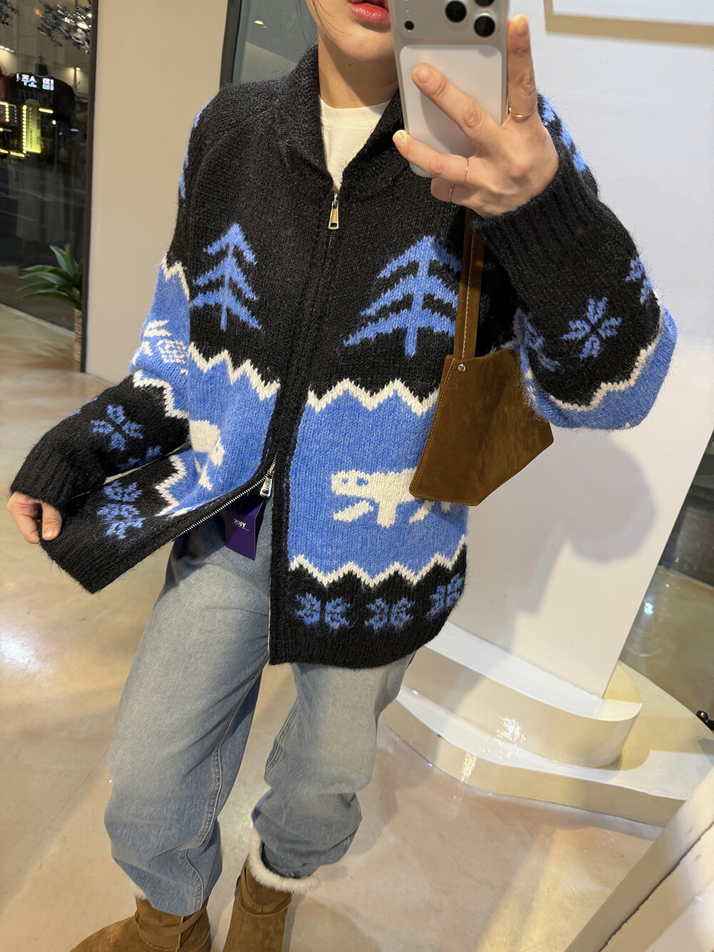 남녀구분없이 같이 즐길 수 있는 겨울 노르딕 패턴 니트집업-