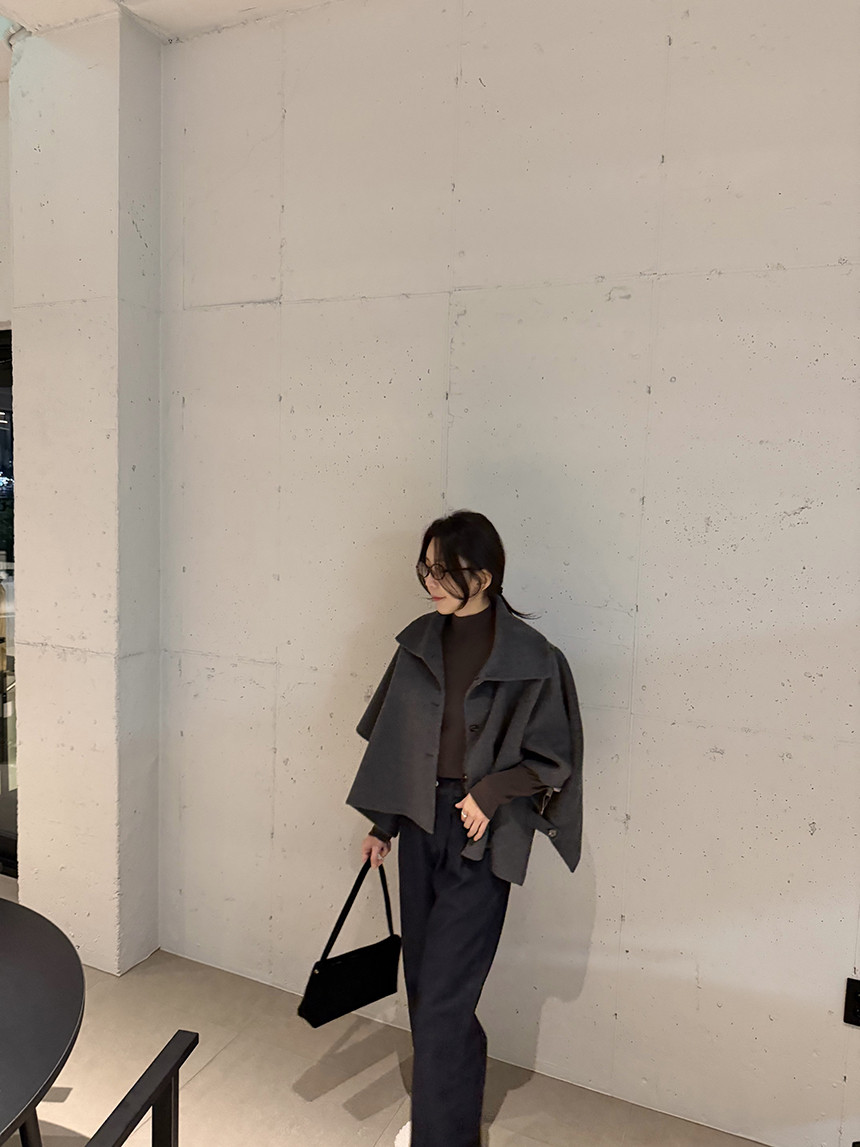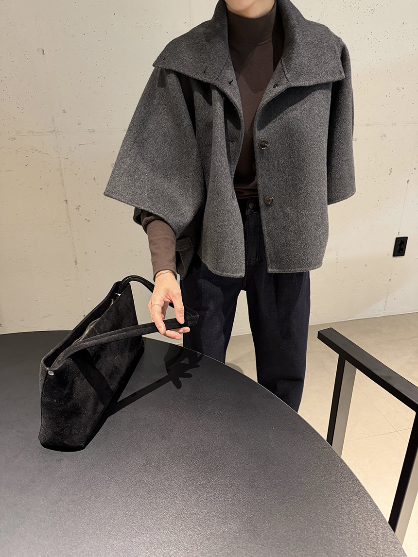 울 캐시미어 혼방으로 고급스럽고 판초 스타일로 체형구애없이 편하게-