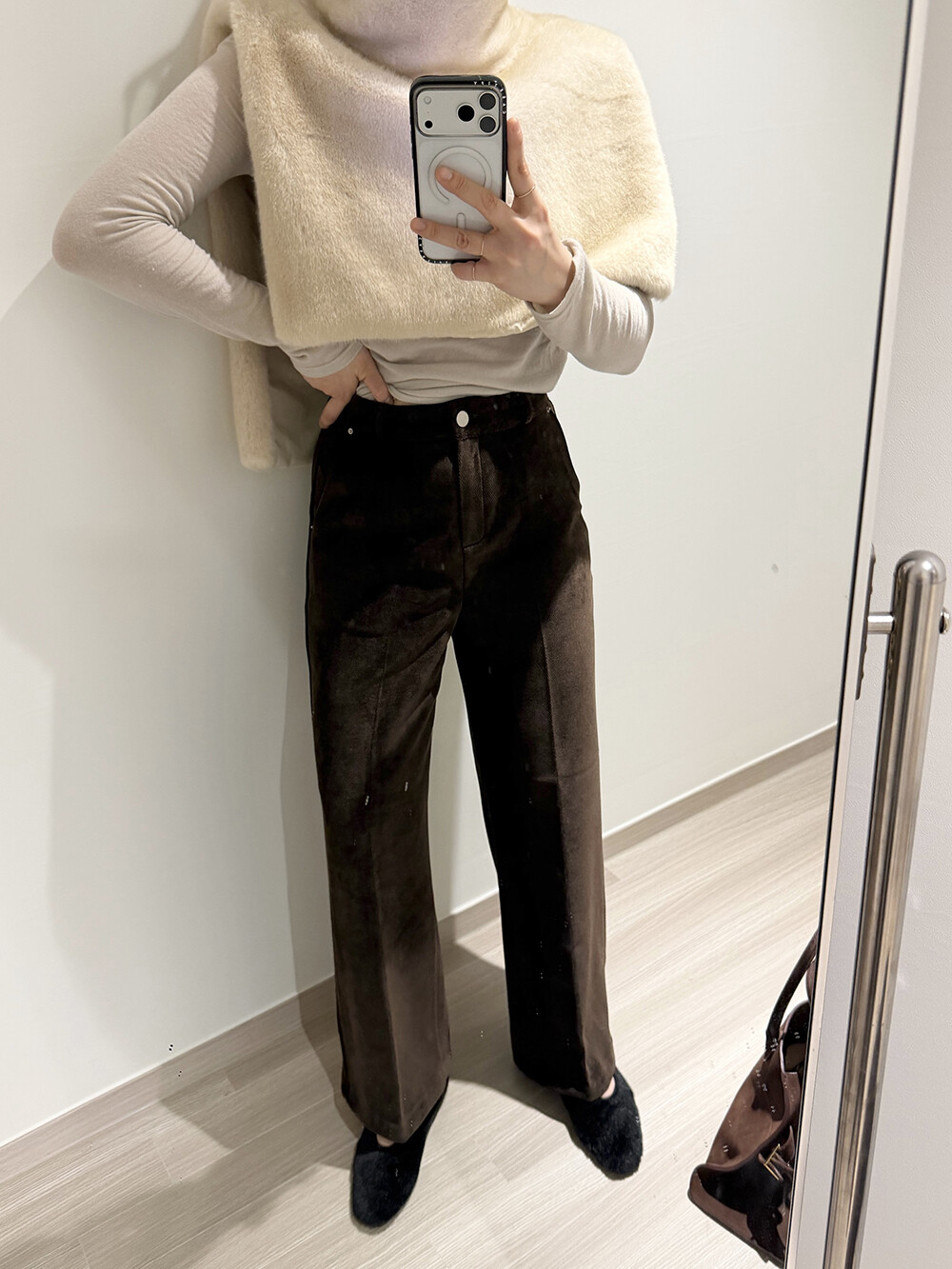 이 바지의 킥은 원단! 매끈하니 스판끼있고 골덴? 벨로아? 의 중간 느낌