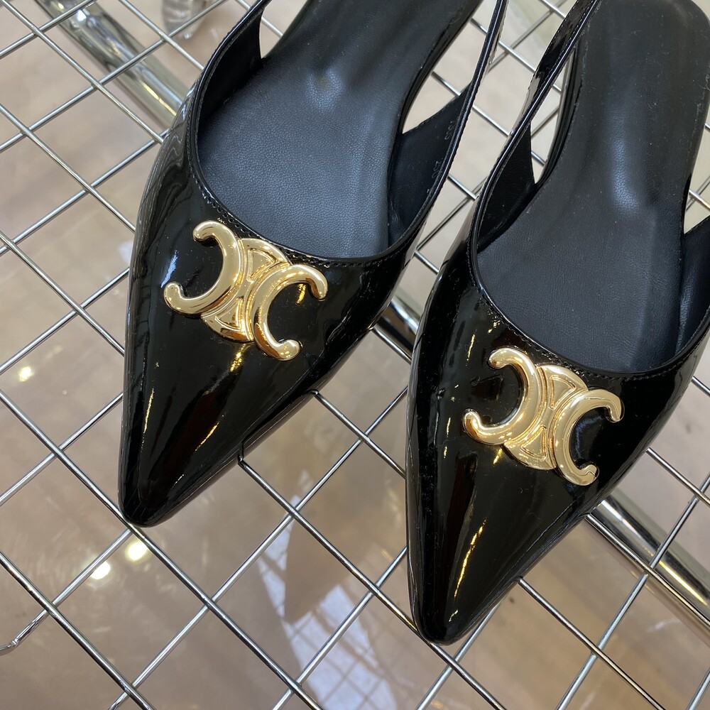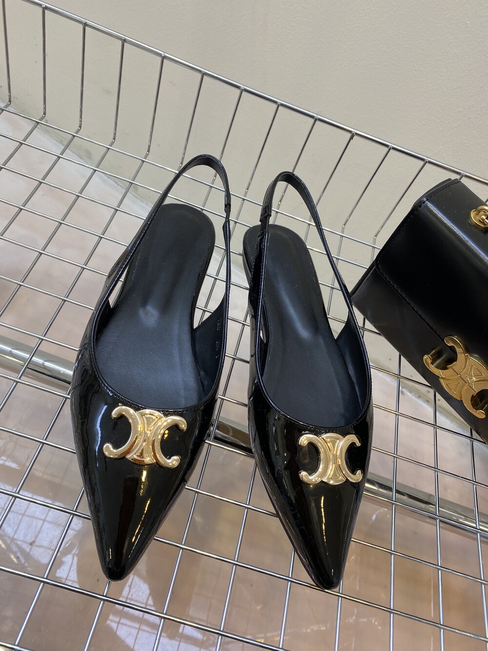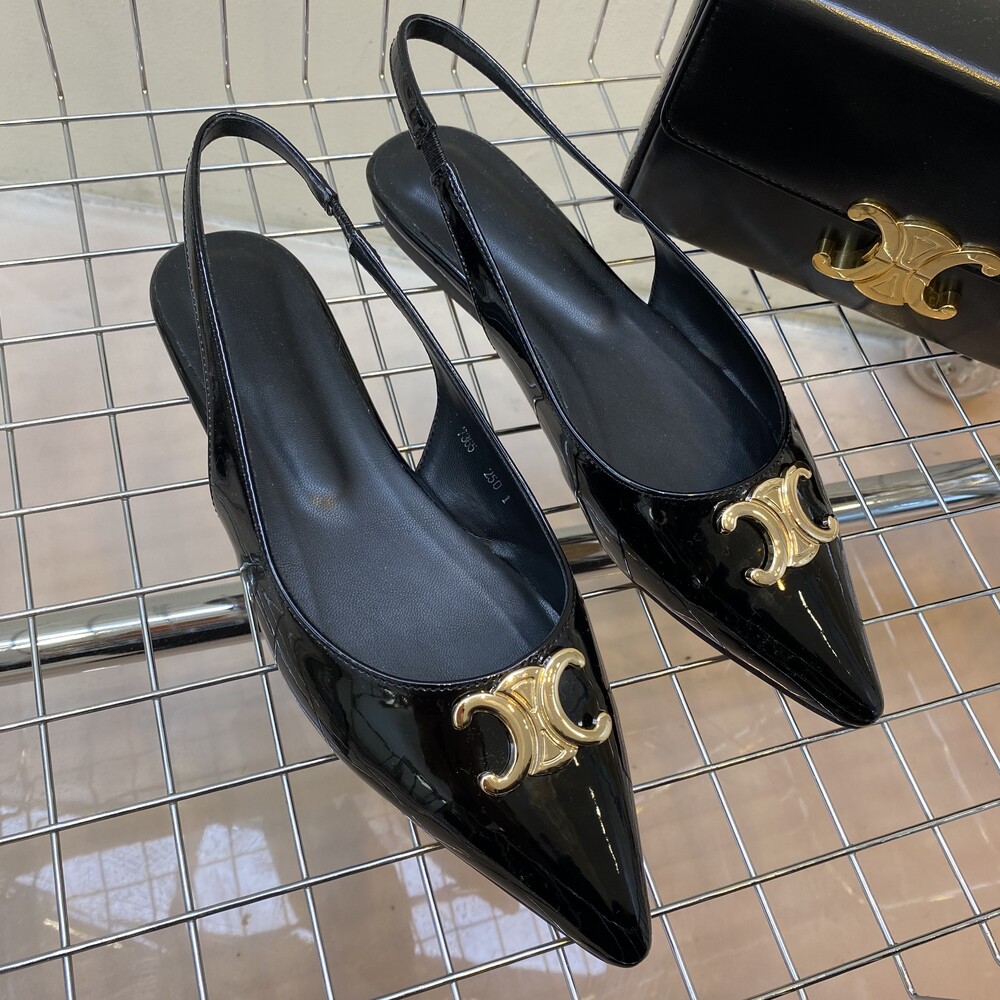 고급스러운 셀*느 로고가 돋보이는 에나멜 슬링백
