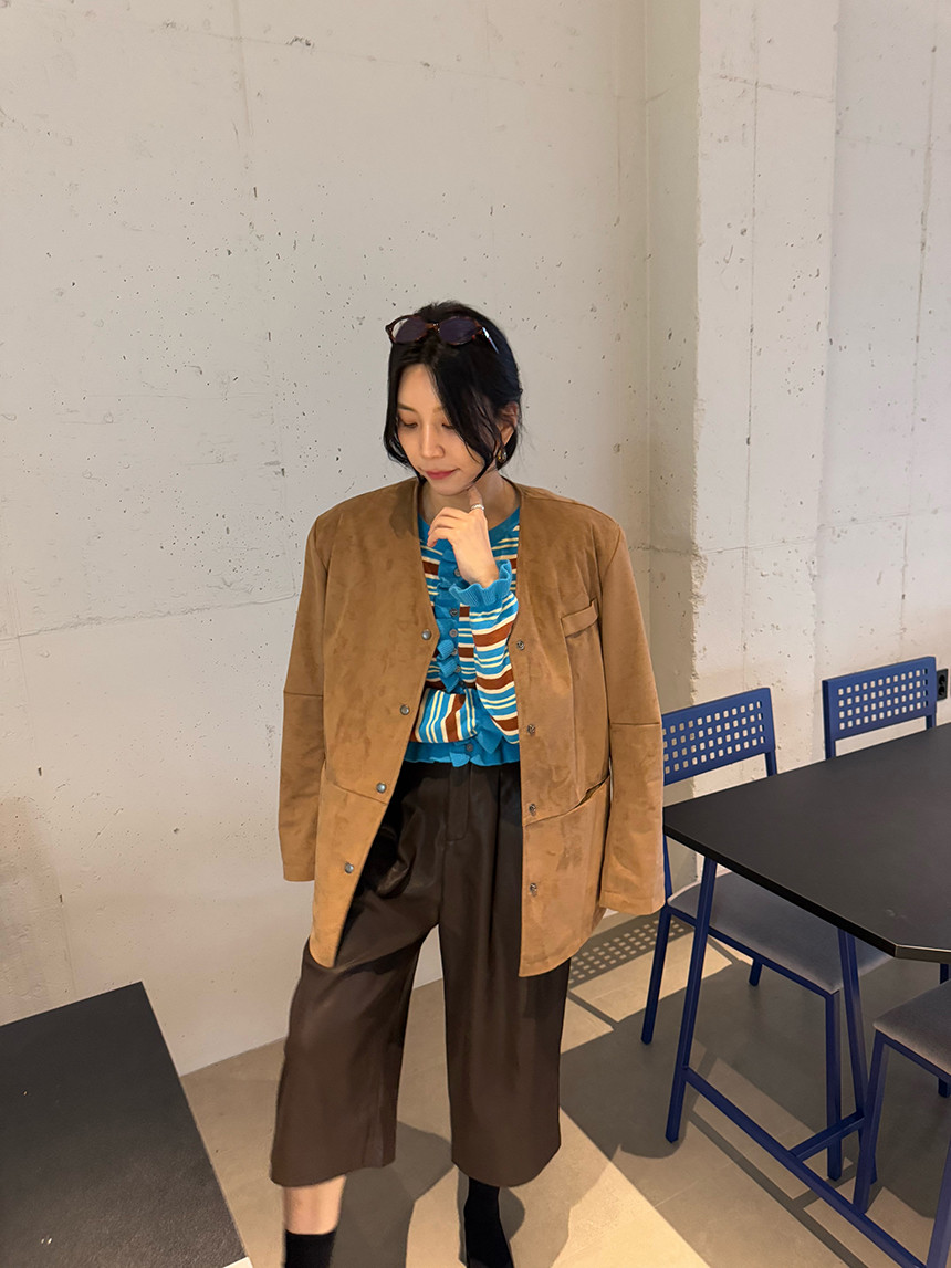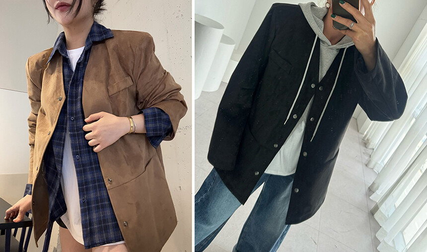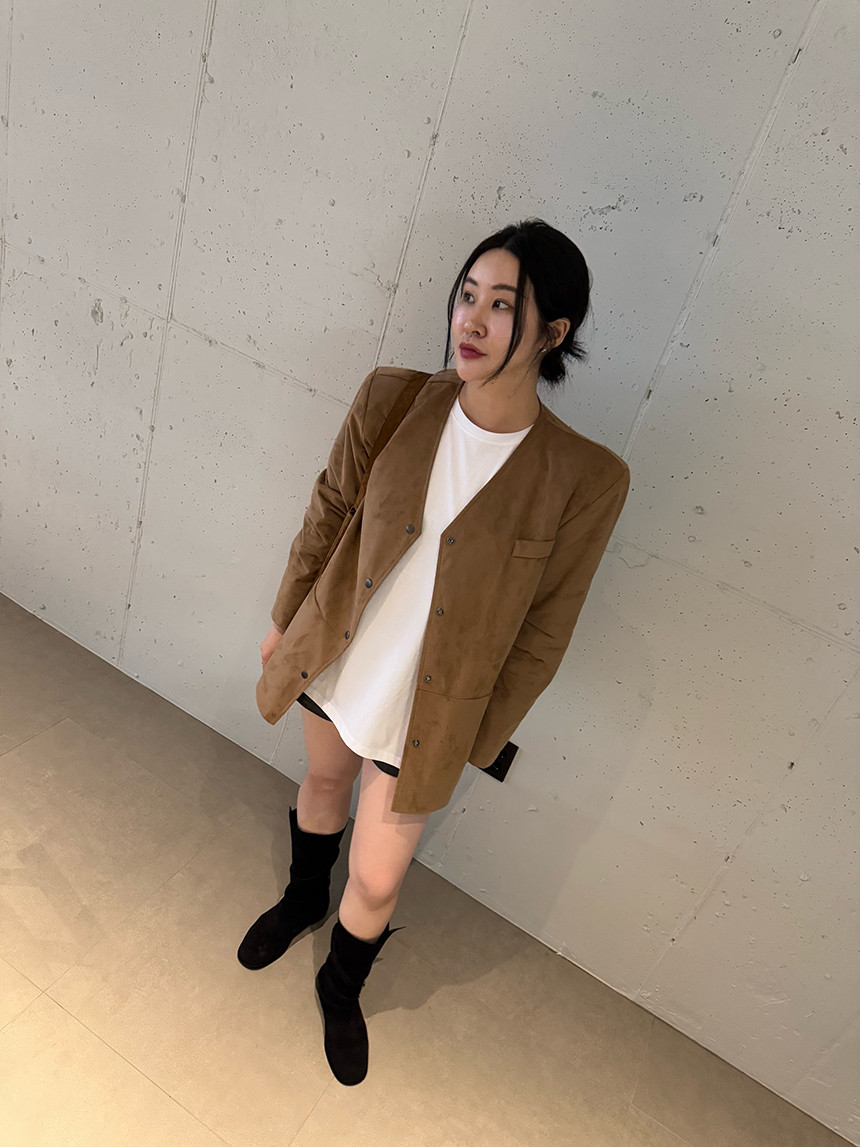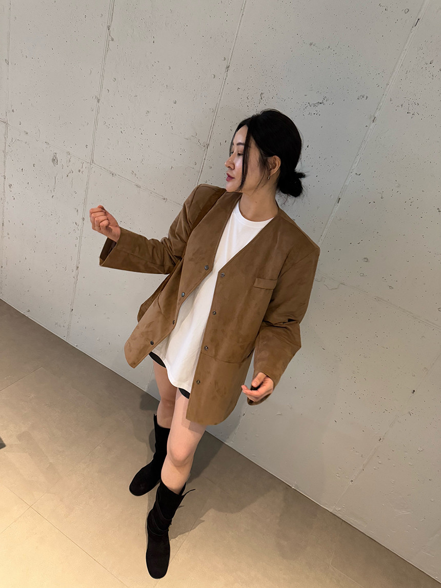 차분함 + 캐쥬얼무드 둘다 갖고있는 노카라 스웨이드 자켓-