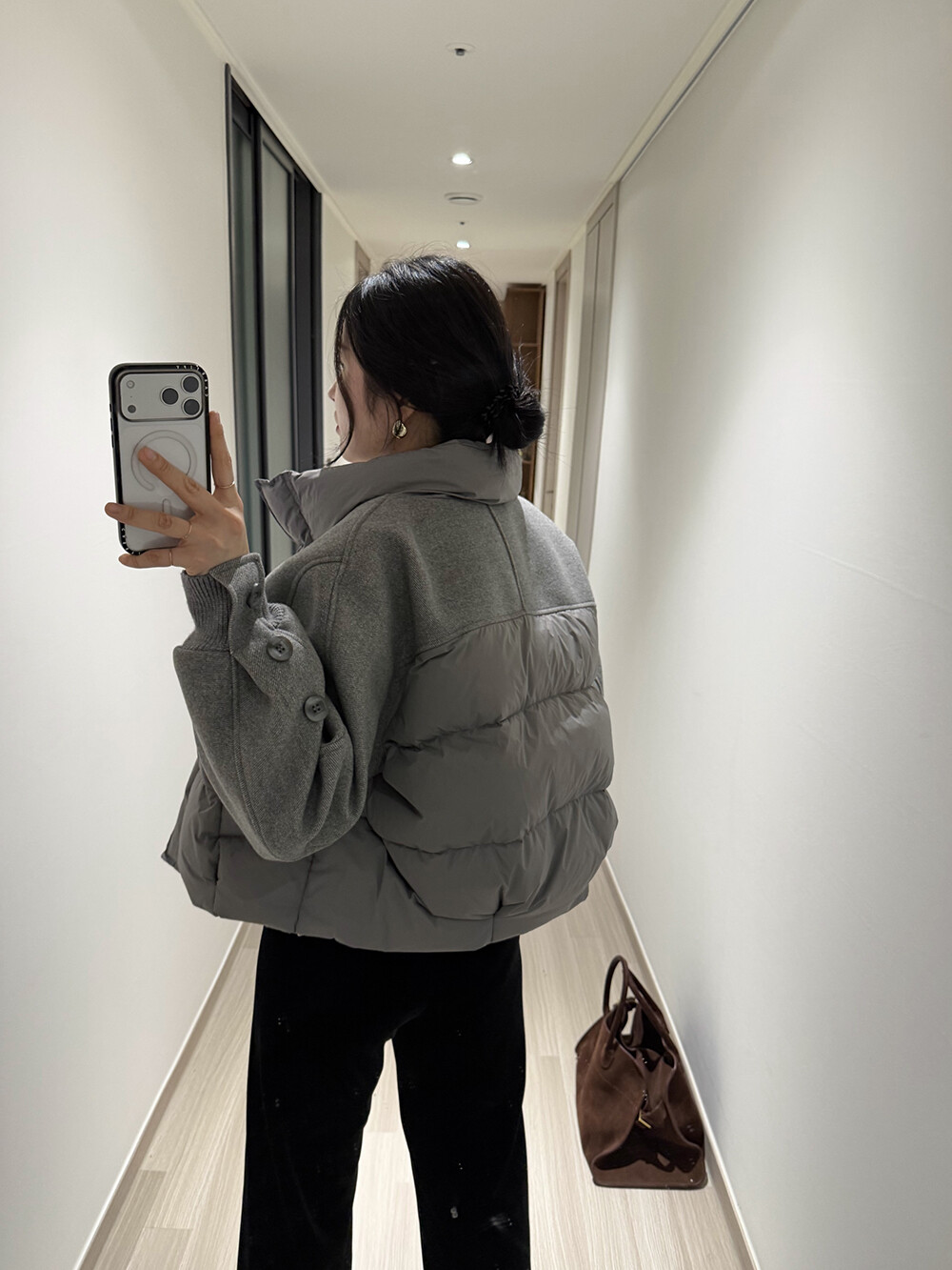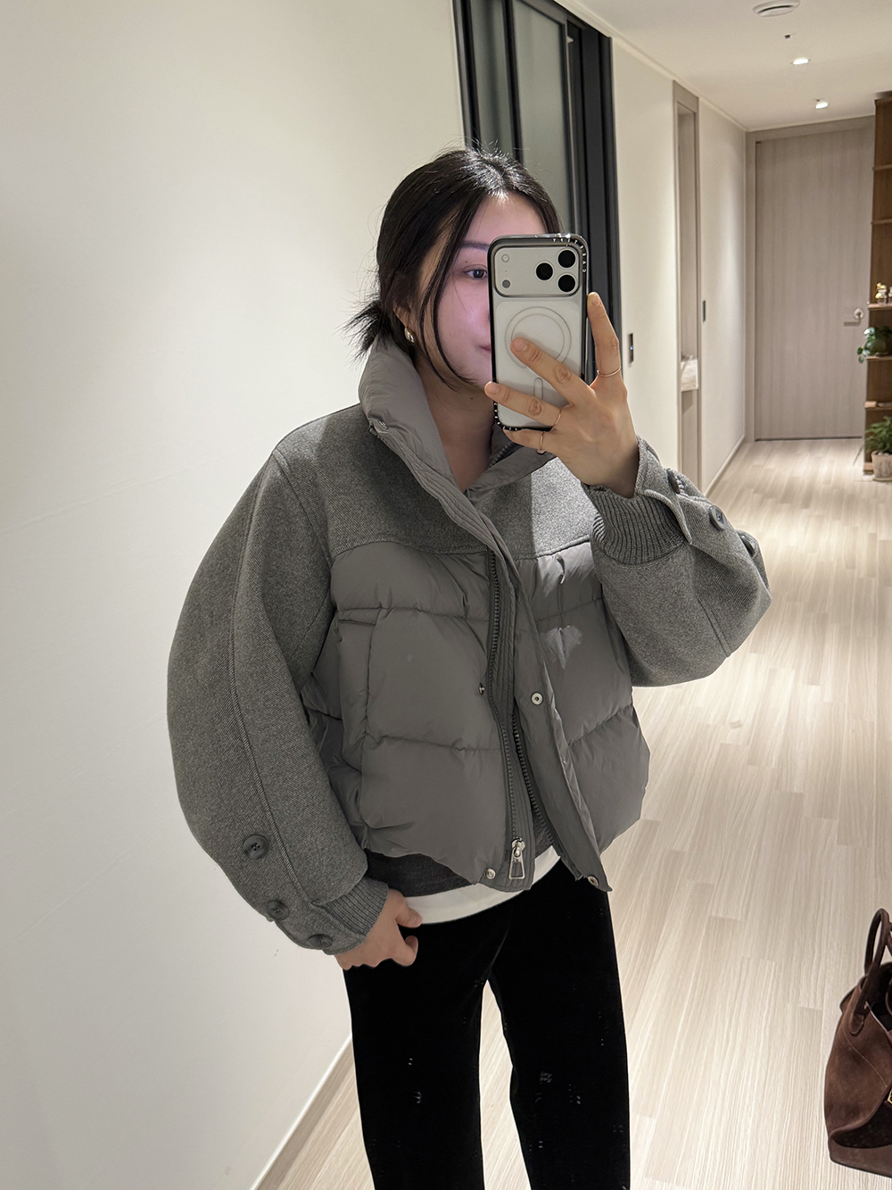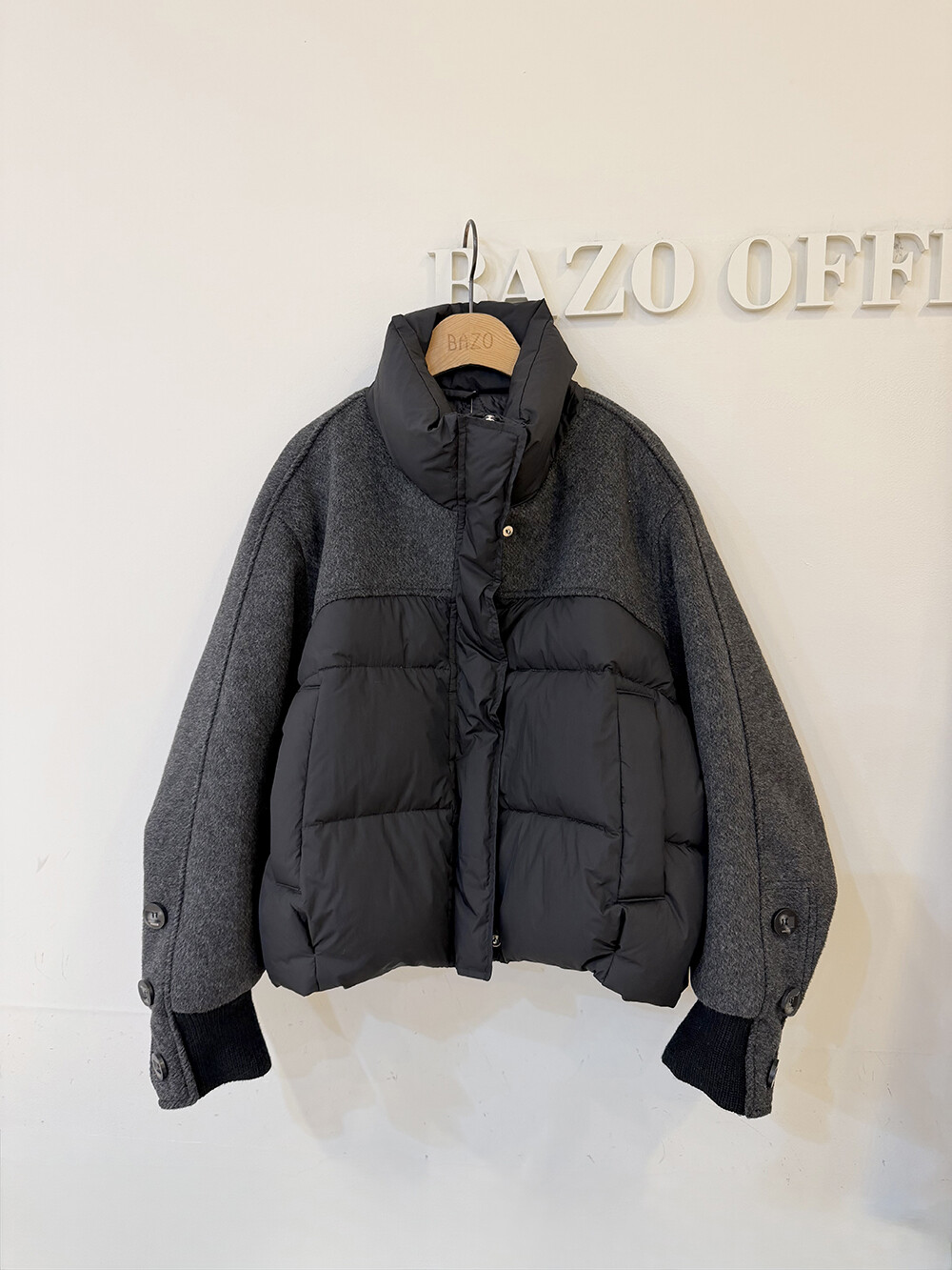 패딩 점퍼와 울 자켓이 믹스된 디자인으로